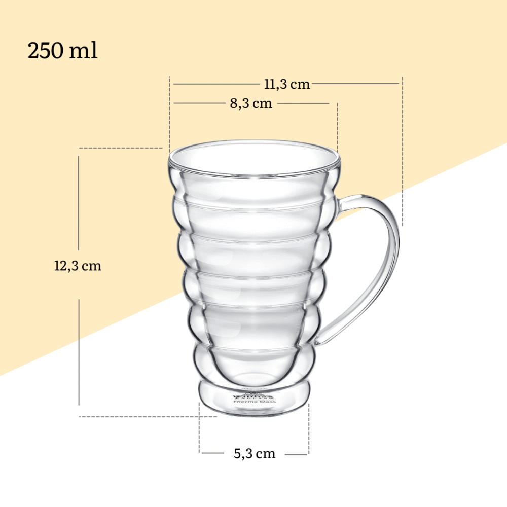 Bubble mug with a capacity of 250 ml is an excellent choice for people who appreciate modern design and practicality. Thanks to double walls, the drink maintains the appropriate temperature for a longer time, making it perfect for both hot and cold beverages. Its elegant appearance adds elegance to any interior, and the lightweight construction makes it easy to use and transport. The mug is made of high-quality materials, which ensures durability and resistance to damage. It’s a must-have in every kitchen and also an excellent gift idea.