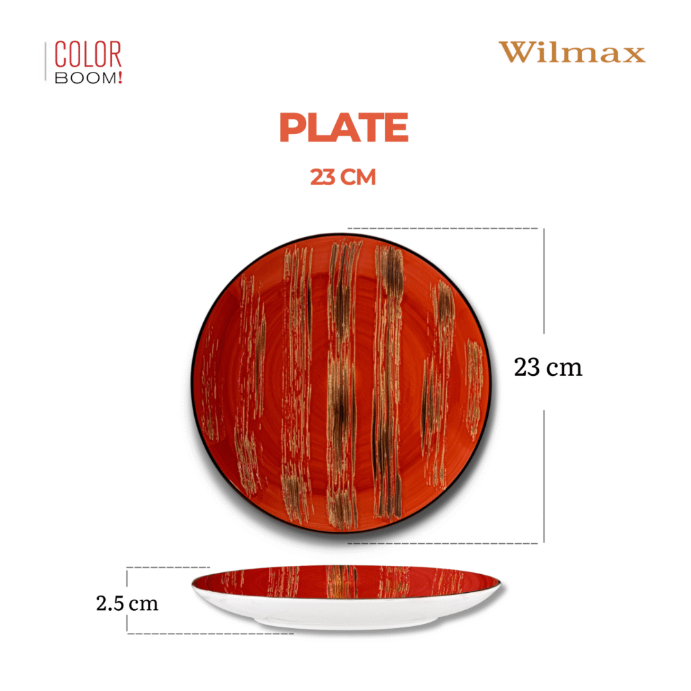 An elegant WILMAX dinner plate with a diameter of 23 cm is a perfect choice for lovers of stylish and colorful porcelain. The red color of the dish gives a unique character to every meal, making it ideal for serving salads, appetizers, desserts and main courses. The plate comes from the exclusive COLORBOOM collection, which combines modern design with functionality.