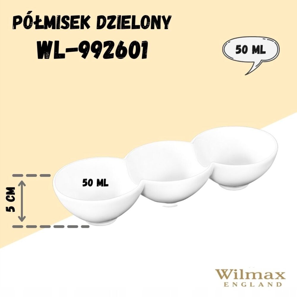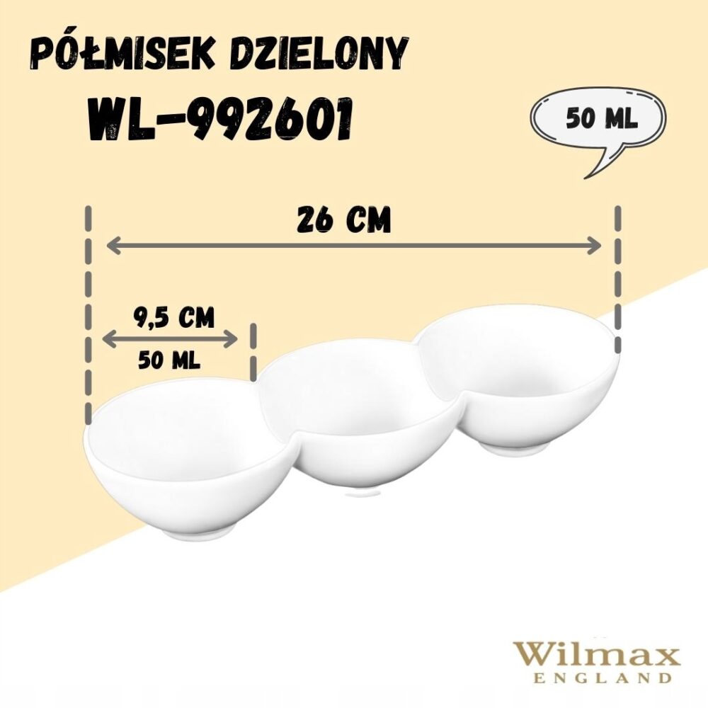 Discover elegance and functionality with WILMAX division measuring 26×9.5×5 cm. This unique divided dish, made of high-quality white porcelain, is an ideal solution for serving small appetizers and snacks for any occasion. Its minimalist design perfectly complements both everyday and more refined table arrangements.