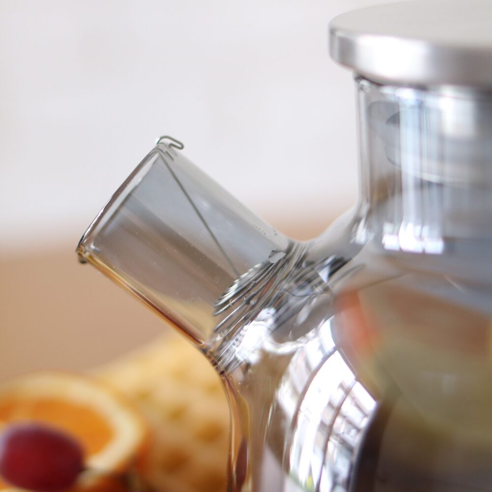 An elegant jug for brewing tea with a capacity of 950 ml in gray color is an excellent choice for tea and herb enthusiasts who value both aesthetics and functionality. Made from high-quality thermal glass, it is characterized by exceptional durability and resistance to high temperatures, making it ideal for brewing various infusions. Its modern design will fit into any interior, and the ergonomic handle ensures comfortable use. The jug is equipped with a practical filter that allows for brewing loose leaf teas and herbs, eliminating unwanted sediment in the infusion. Thanks to its large capacity, it is an ideal solution for both intimate gatherings and larger parties. The combination of functionality and elegance makes this jug not only a practical accessory, but also a stylish element of kitchen equipment, allowing you to enjoy the exceptional taste of tea every time.