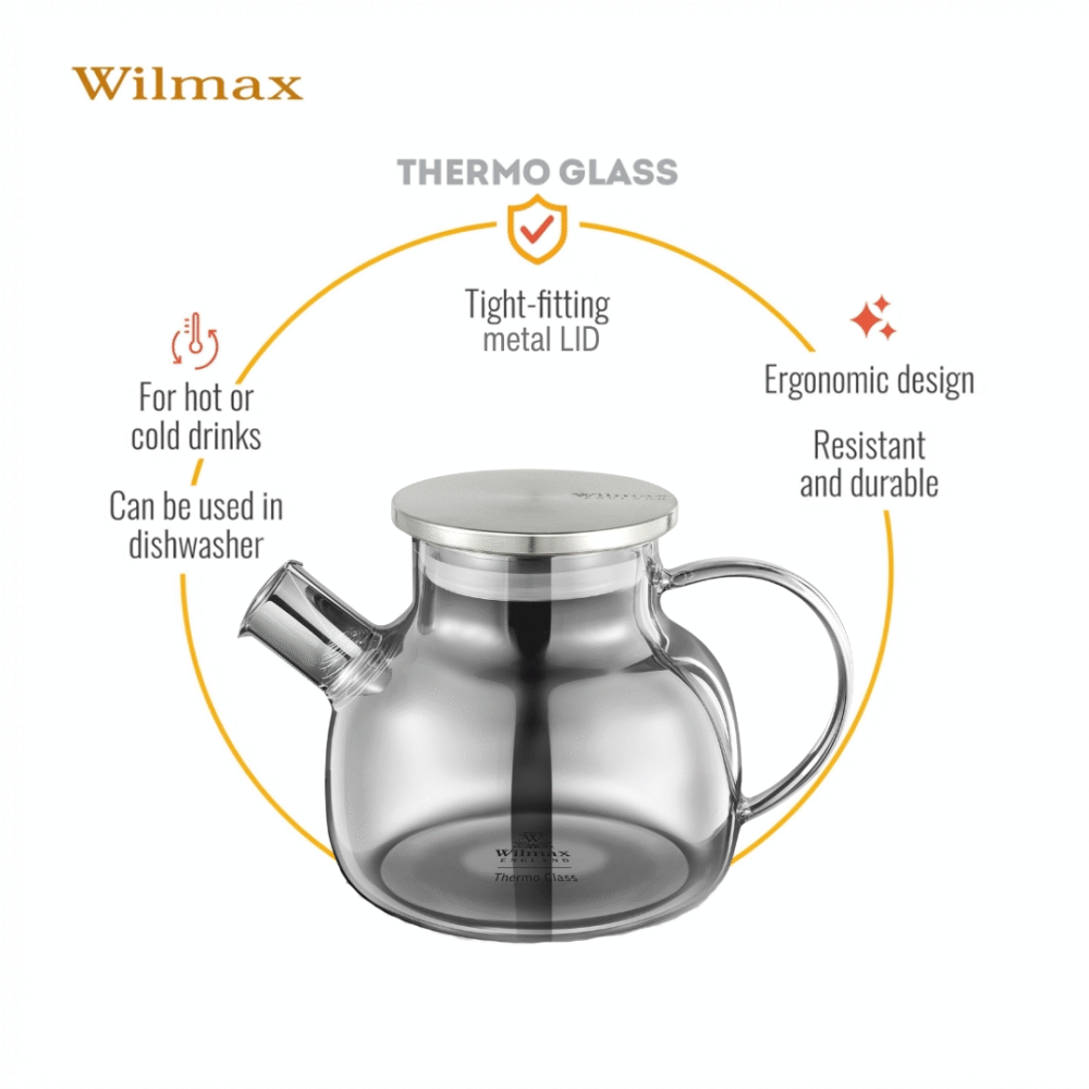 Glass jug for tea silver with stainless steel lid 950 ml WL-888810002/A