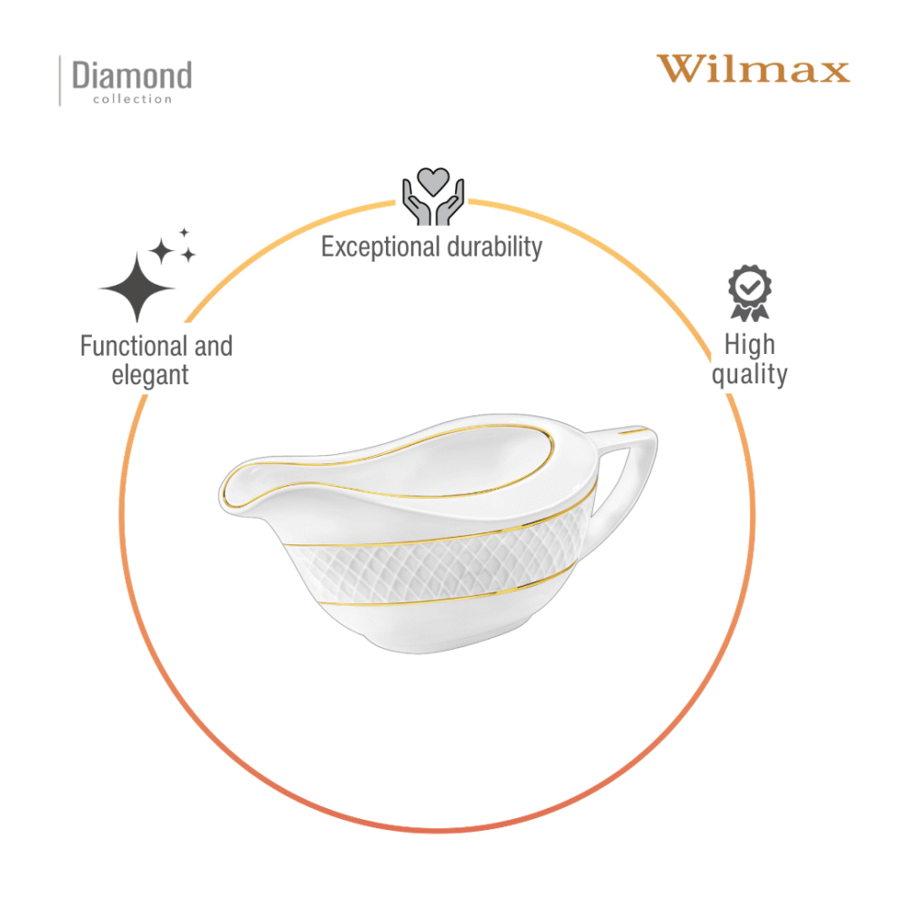 Gravy boat 230 ml white porcelain with gold rim WL-880102501/A