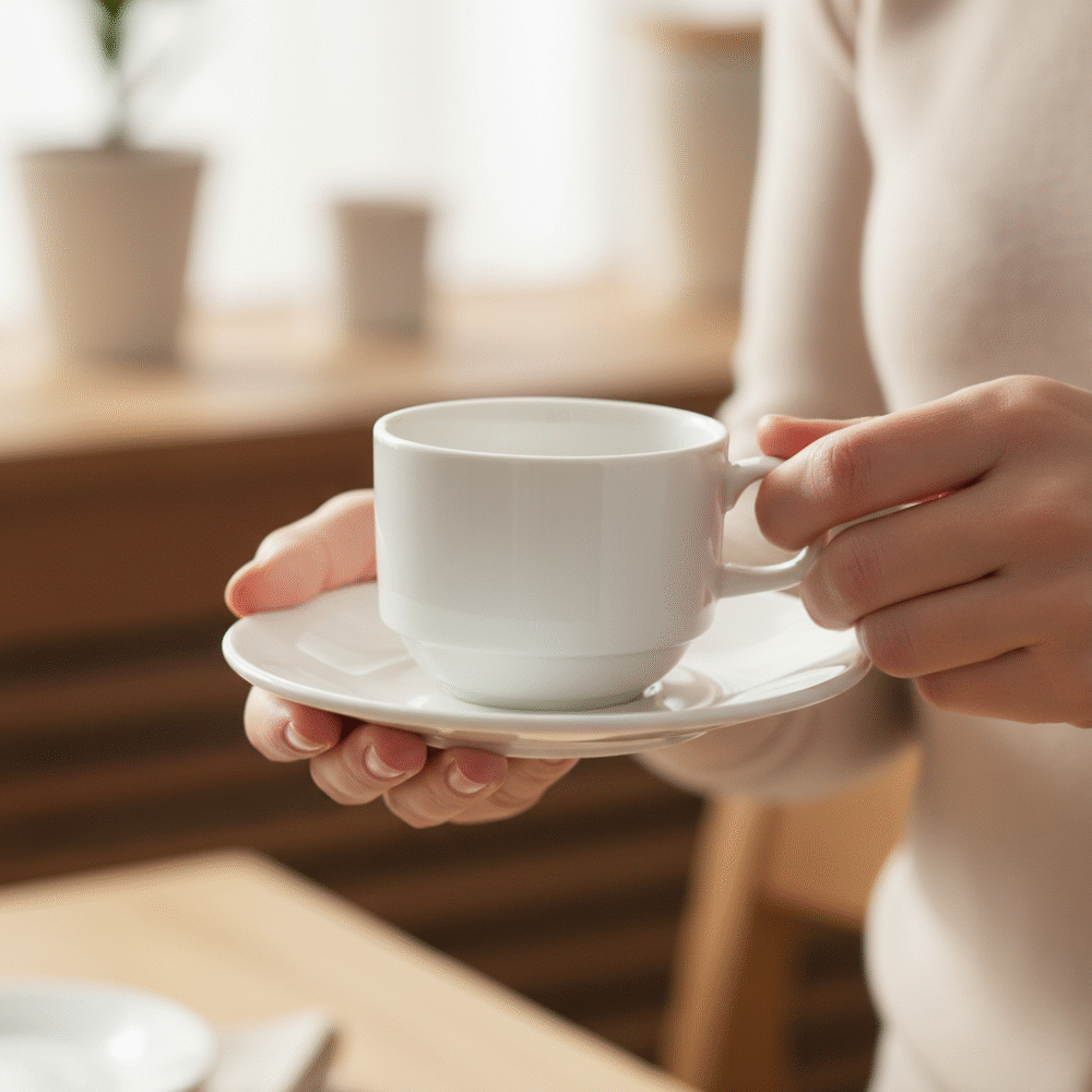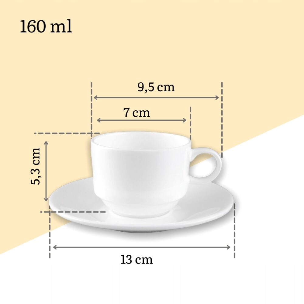 A mug with a capacity of 140 ml in a set with a stylish saucer is an ideal choice for coffee lovers. Made from high-quality ceramic, it is characterized by elegant finishing, which will add class to any coffee service. Thanks to its compact size, the mug is perfect for serving espresso, and the saucer is a practical solution for placing the cup. Products are available in attractive colors, which allows them to be matched to individual preferences and interior decoration. It is worth having this set in your kitchen or as an excellent gift for a loved one.