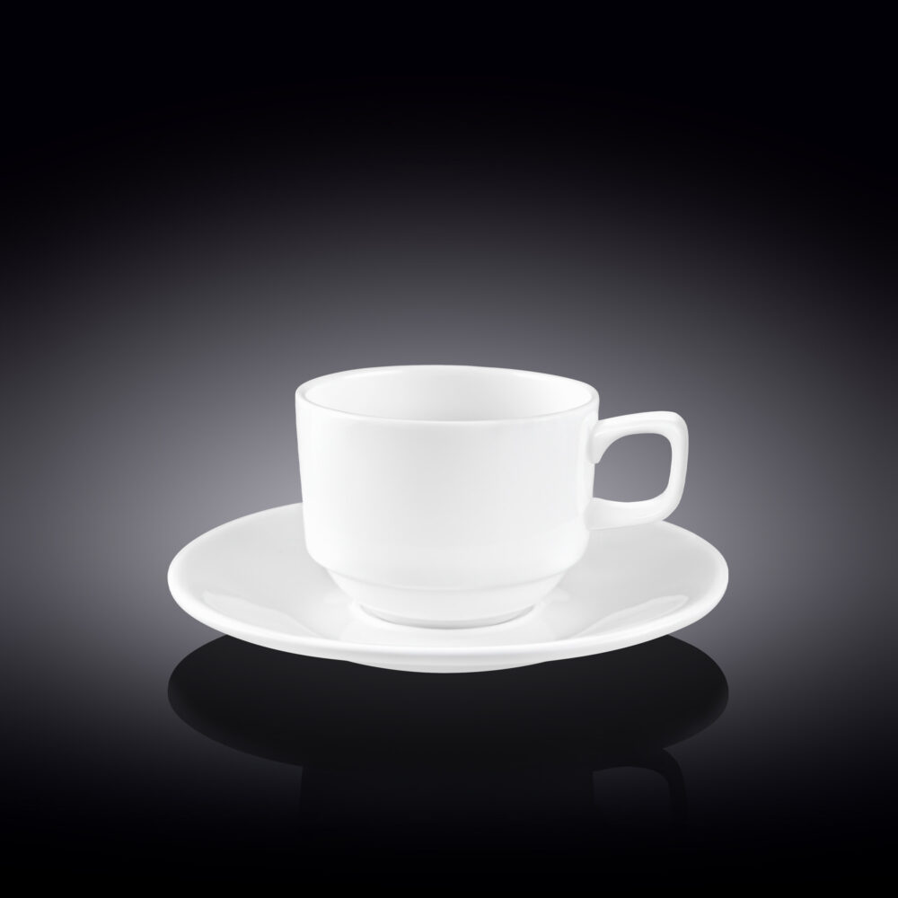 Mug 140 ml and saucer for coffee white porcelain WL-993039/AB