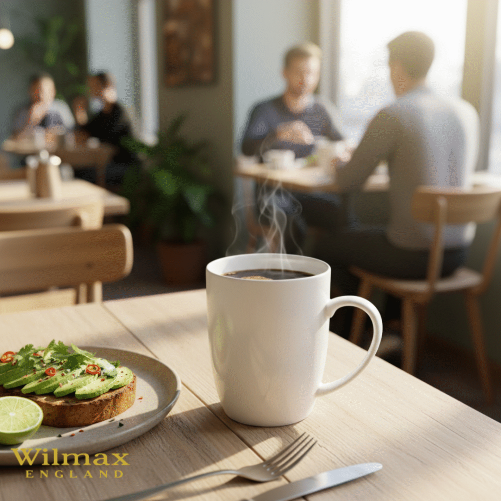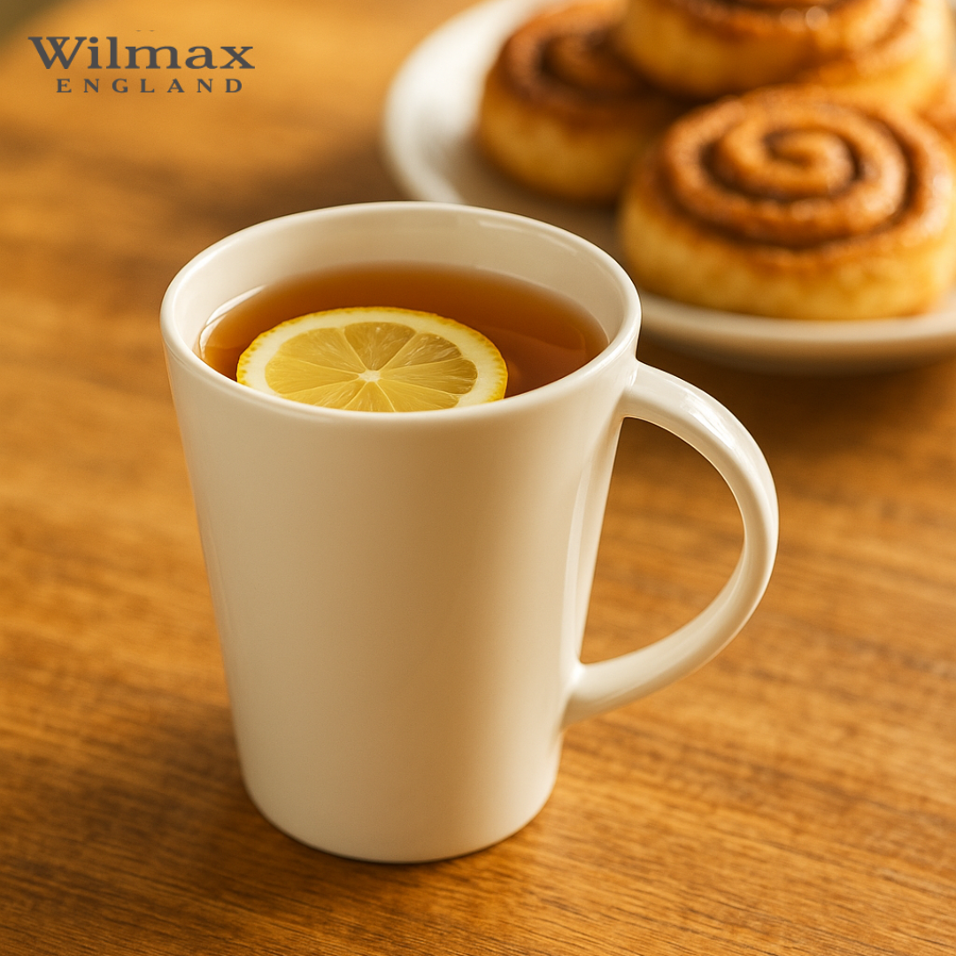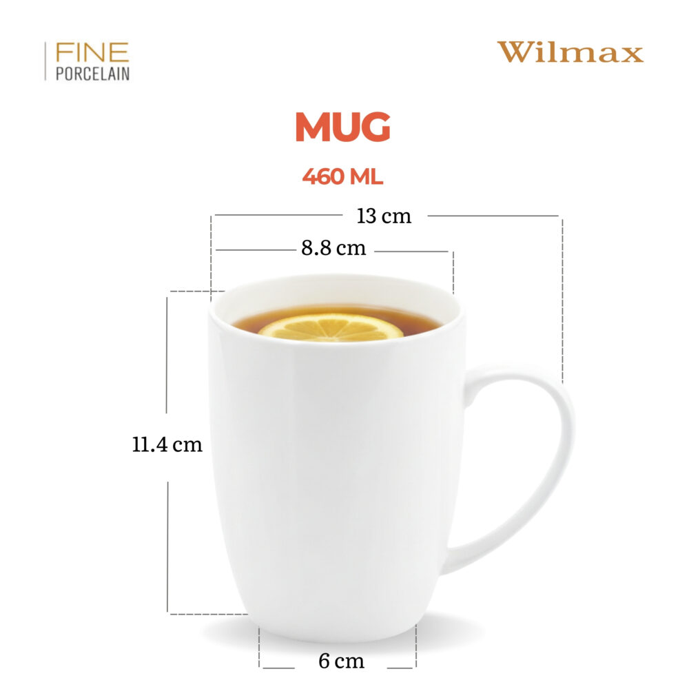 WILMAX mug for coffee and tea with a capacity of 460 ml is an elegant addition that will bring classic style to any table. Made from high-quality white porcelain, it guarantees durability and resistance to scratches. Thanks to its exceptional finish in a glossy form, it looks extremely impressive both during everyday meals and at special occasions. WILMAX products, known for advanced production technology, are adapted for washing in dishwashers and for use in microwaves and ovens, ensuring comfort in use. The set includes one mug, delivered in standard cardboard. Please note: the product is not available in gift packaging. Discover the pleasure of drinking your favorite beverages from an elegant mug that combines functionality and aesthetics.