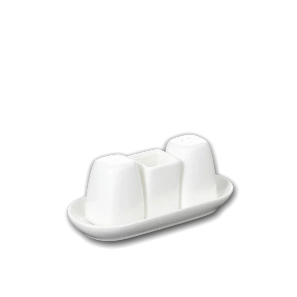 WILMAX spice set is an elegant and functional proposition that will enrich any table. Consisting of a salt shaker, pepper shaker and toothpick holder, the set is packaged on a stylish stand, which emphasizes its modern design. Made from high-quality white porcelain, which blends perfectly with various table arrangements, the WILMAX set will make every meal serving take on a special character, reminiscent of the atmosphere of an elegant restaurant.