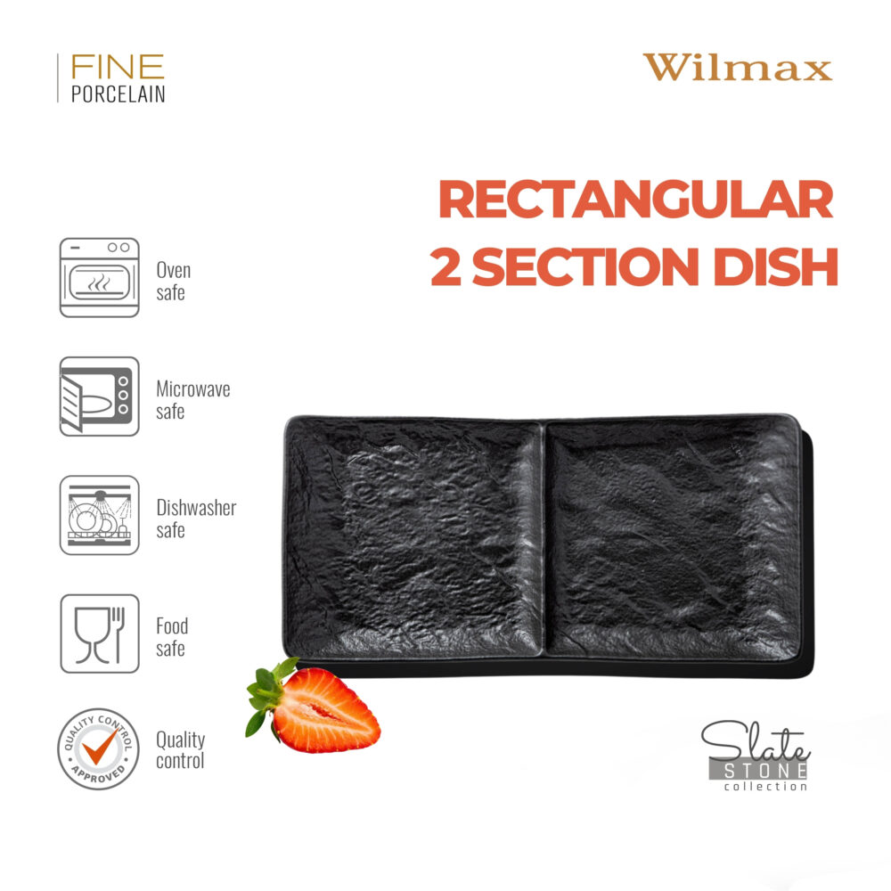 Rectangular plate 2 sections black matte porcelain 27×13 cm WL-661135/A