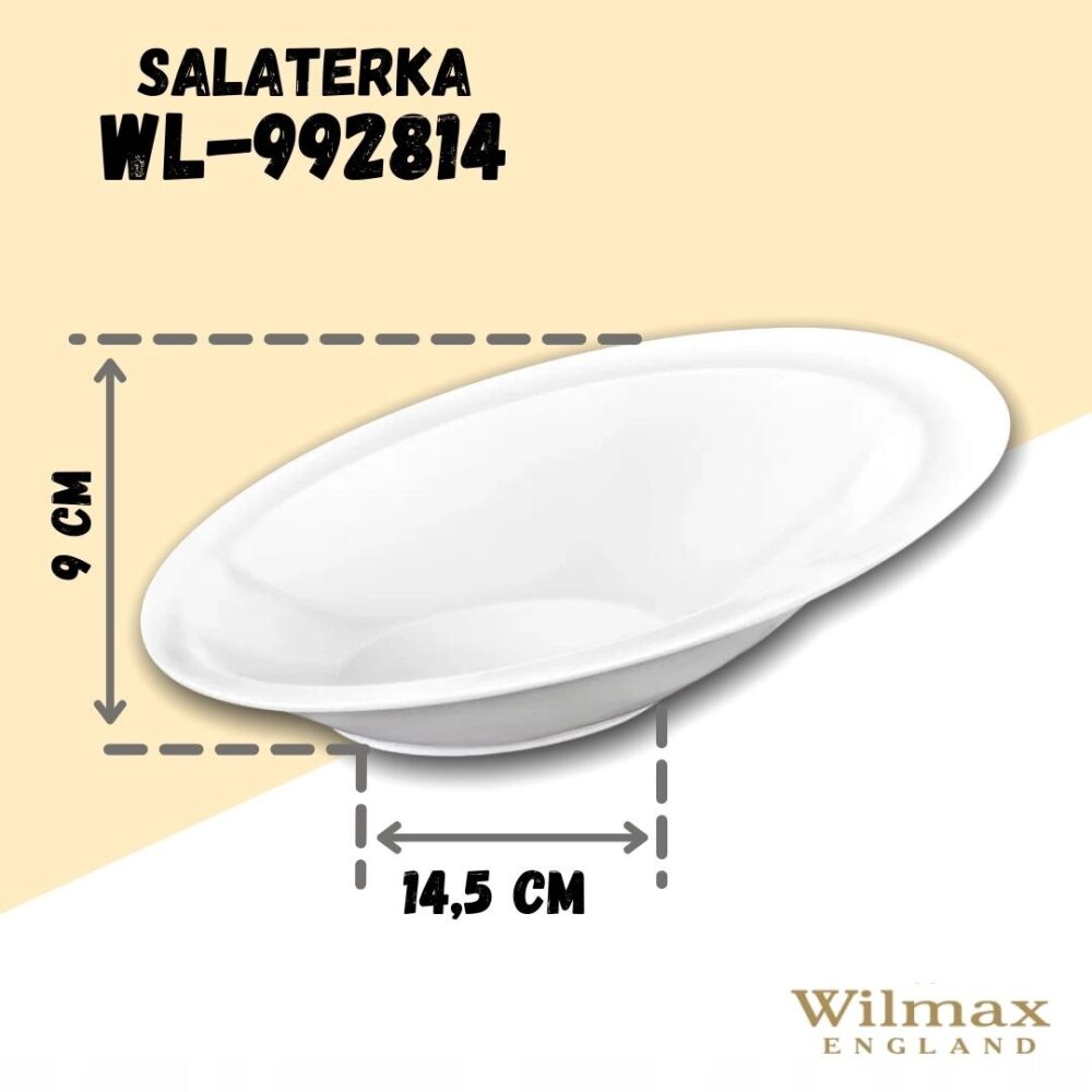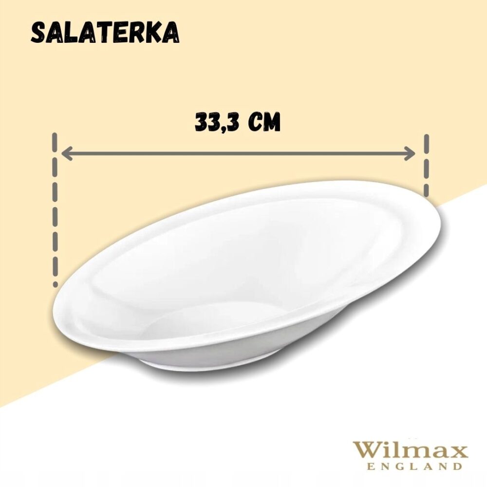 WILMAX salad bowl measuring 33.5×23 cm is an elegant element of tableware that combines modern design and functionality. Made from high-quality white porcelain, it will look perfect on any table, adding class and elegance during all occasions — from everyday meals to special events. Thanks to its resistance to scratches and fading, WILMAX dishes retain their aesthetics for a long time, making them an ideal choice for intensive kitchen use. The salad bowl is suitable for use in the microwave and is safe in the dishwasher and oven, ensuring convenience in preparing and serving dishes. The product is delivered in a standard cardboard box, without gift packaging. Invest in high-quality WILMAX porcelain and enjoy exceptional moments during shared meals.
