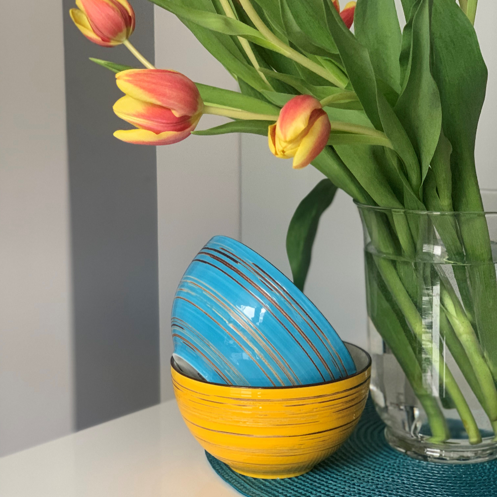 All products from this collection are made of porcelain covered with hand-applied colored glaze, which means that each specimen has its own unique character. The bowl is characterized by a glossy finish, and thanks to high-quality materials, it is durable and functional – it can be washed in the dishwasher and used in the microwave and oven.