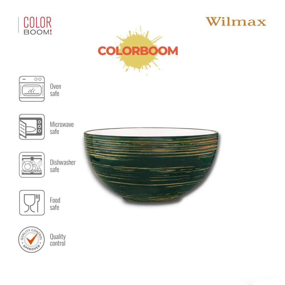 Salad bowl with a diameter of 14 cm and capacity of 600 ml is an elegant element of tableware, ideal for soups, salads, oatmeal or desserts. It is characterized by an intense green color, which will add freshness to every table. The bowl comes from the modern COLORBOOM collection from WILMAX, which impresses with its variety of colors and exceptional finishing.