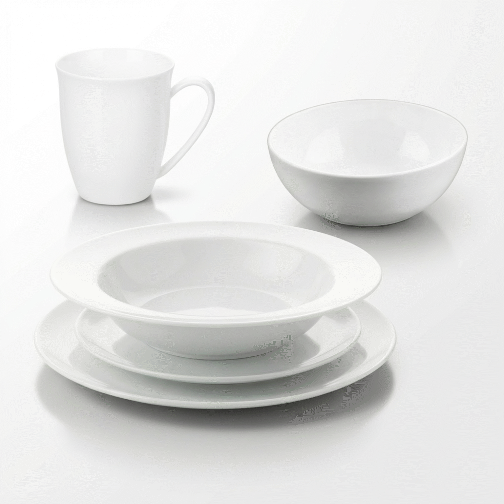 This set of dishes for one person will work well in a home, apartment, suite, dorm or office. It can also be a great gift idea for a single, a student, a person decorating a new apartment or for anyone looking for a practical and stylish porcelain set for everyday use. Thanks to its versatile use, the set is suitable for a variety of occasions – from casual meals to more elegant moments at the table.