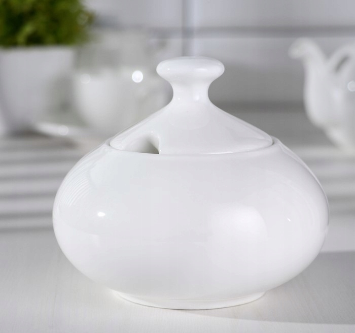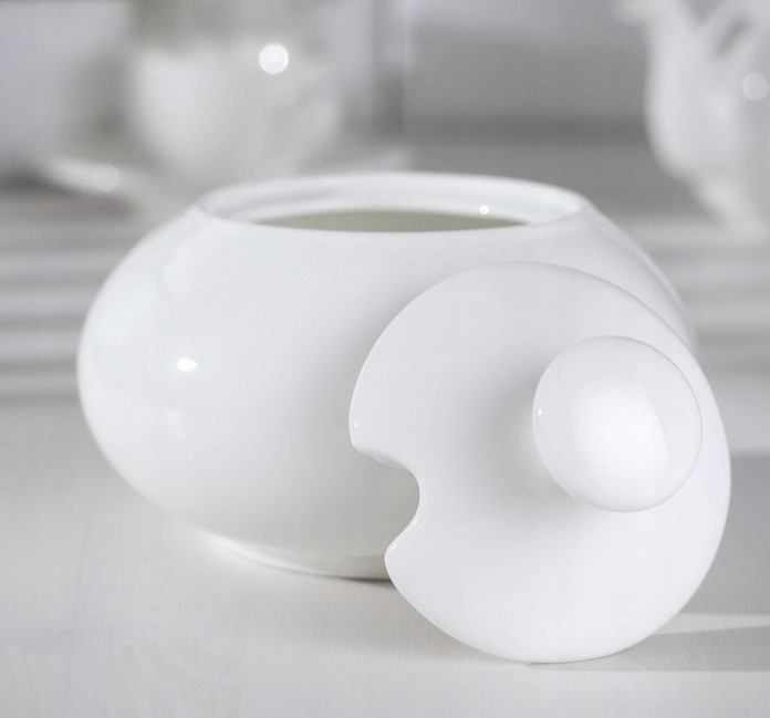 WILMAX sugar bowl. A white round sugar bowl with a lid is perfect for storing and serving sugar on the table while drinking tea.