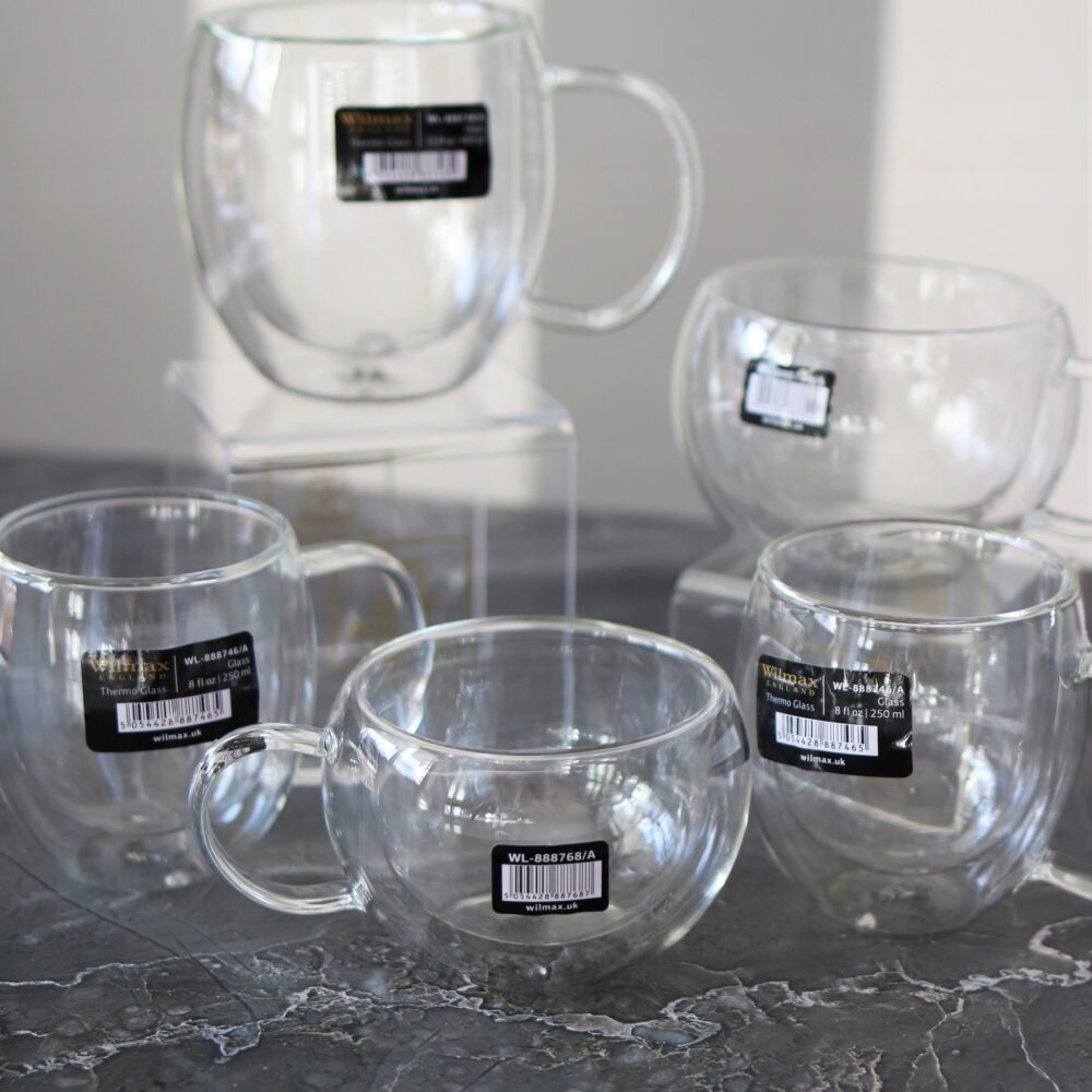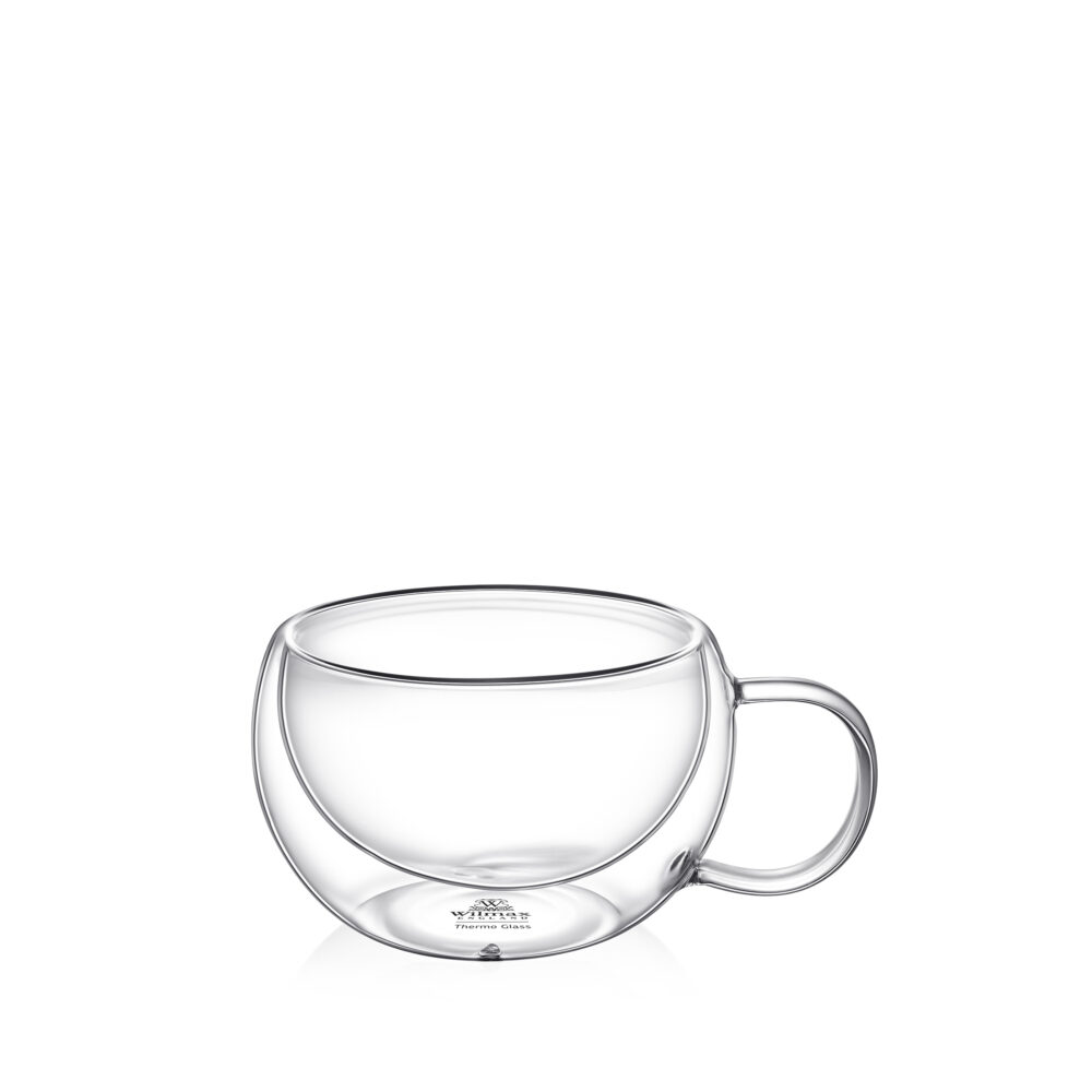 WILMAX thermal mug with double walls with a capacity of 300 ml is a modern drinking vessel that combines elegance with functionality. Made from heat-resistant glass, it is perfect for serving coffee, tea and other hot beverages. Double walls ensure longer maintenance of optimal beverage temperature while protecting users from hand burns. The mug is hypoallergenic, does not absorb odors and is distinguished by high scratch resistance, making it a durable choice for years.