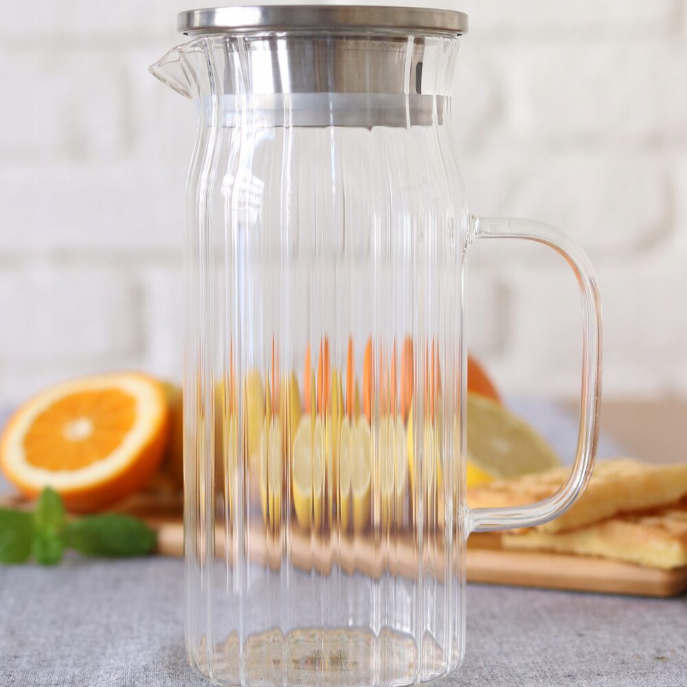 Dzbanek szklany ryflowany z pokrywką metalową 1000 ml WL-888219/A