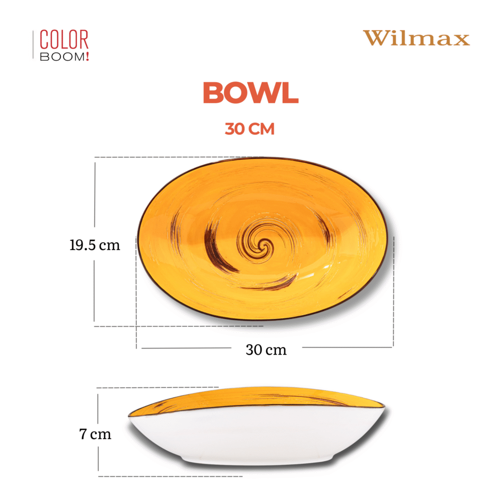 Kolekcja COLOR BOOM od WILMAX to ręcznie wykonane naczynia, które wyróżniają się oryginalnym wzorem Spiral. Dzięki zastosowaniu kolorowego szkliwa, każde naczynie jest niepowtarzalne, co sprawia, że stołowa aranżacja zyskuje wyjątkowy styl. Misa idealnie współgra z innymi produktami w jasnych odcieniach, jak również z białą porcelaną WILMAX oraz bambusem.