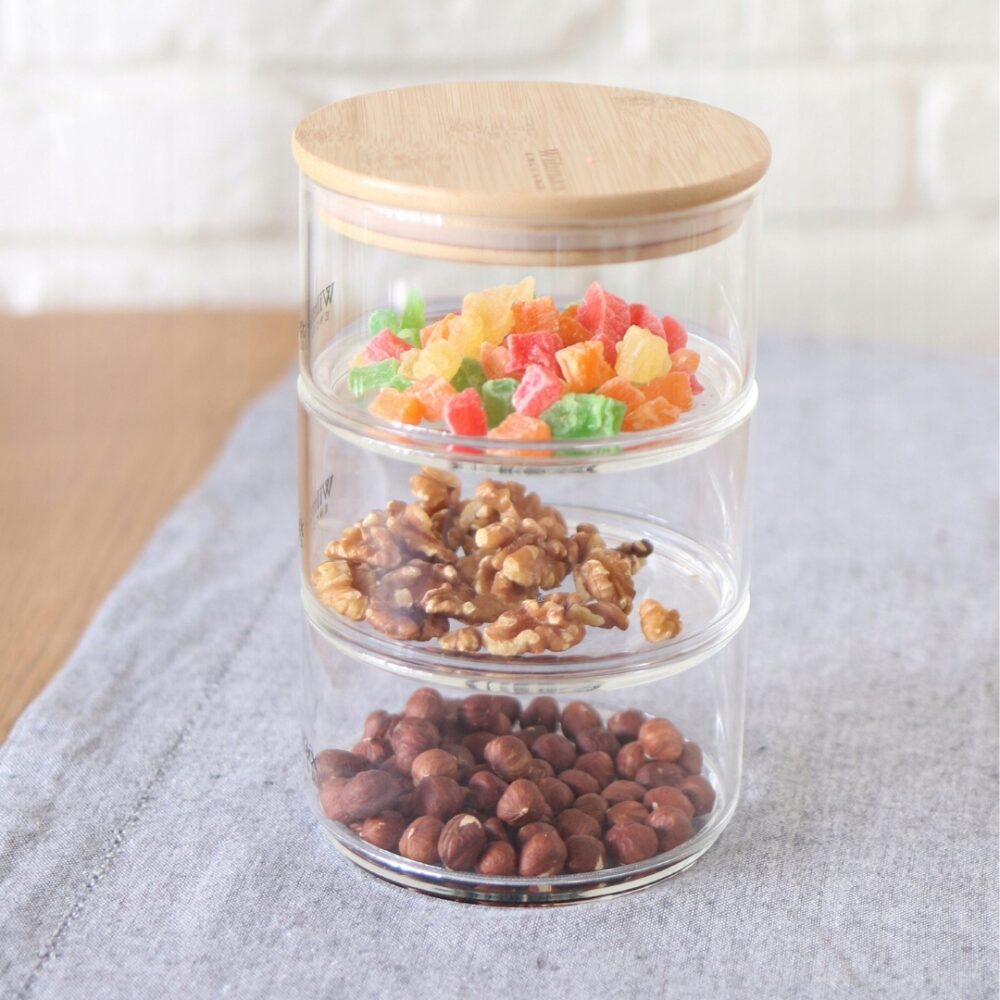 Słoik szklany z bambusową pokrywą 3 poziomy WL-888522/A