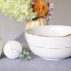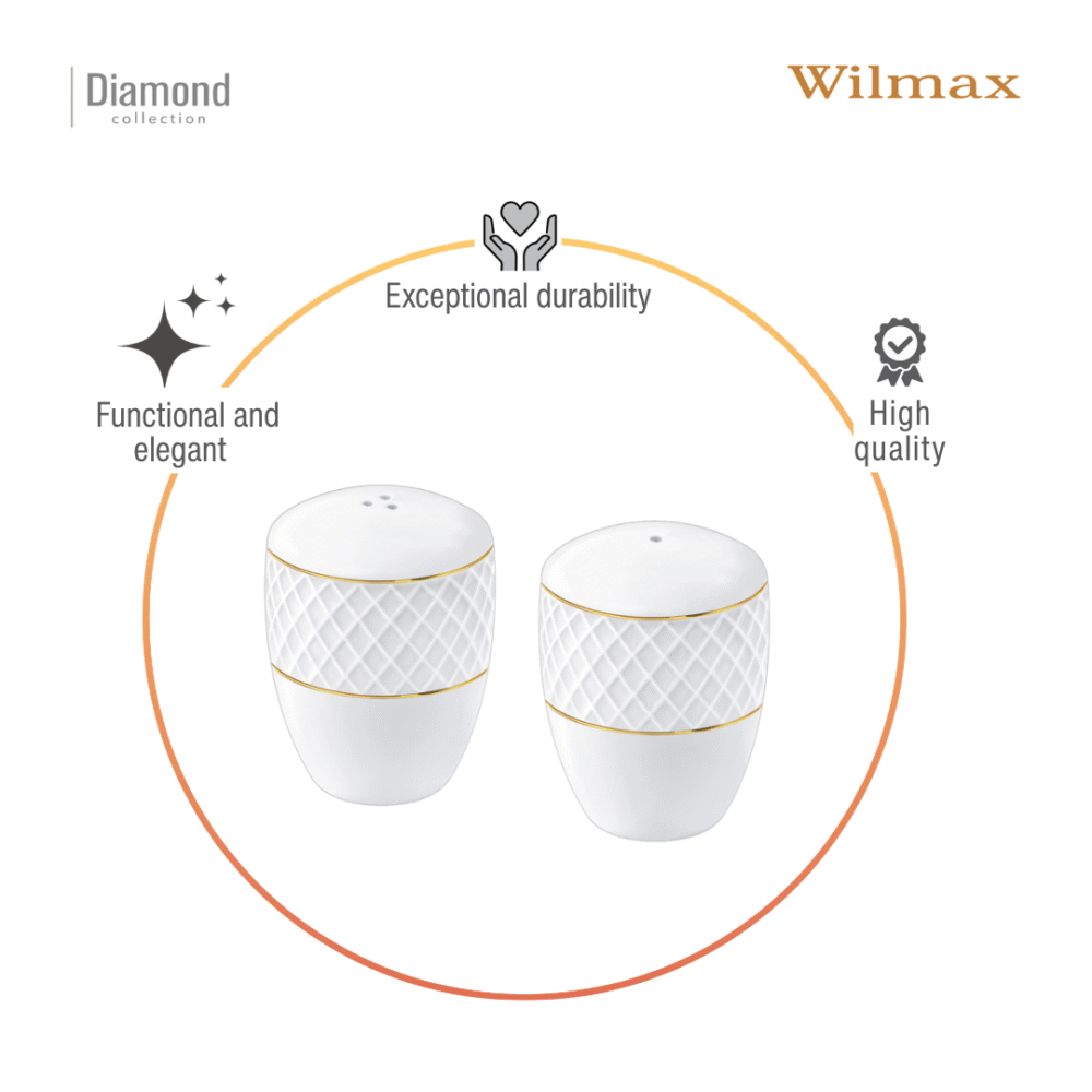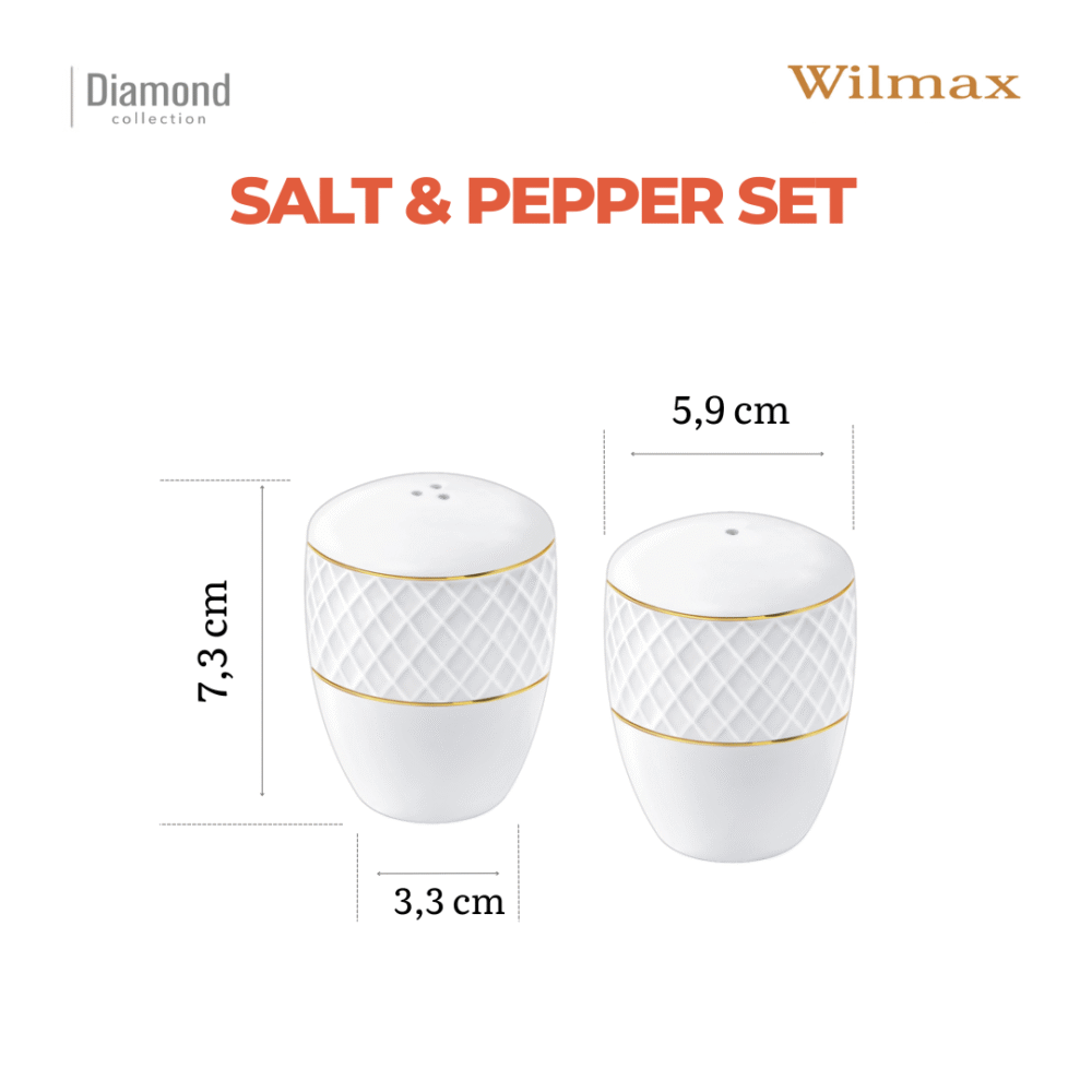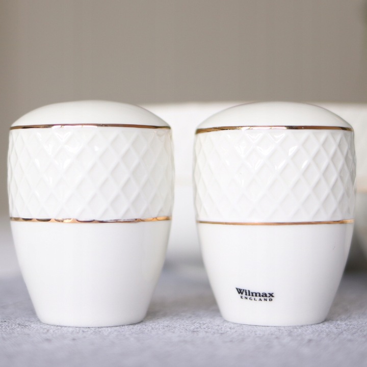 Solniczka i pieprzniczka zestaw biały porcelanowy ze złotym rantem WL-880102555/SP