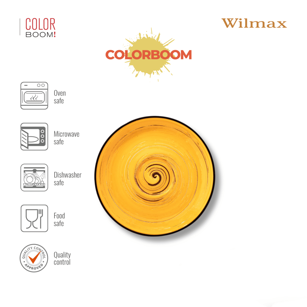 Spodek WILMAX o średnicy 12 cm w atrakcyjnym żółtym kolorze to doskonałe uzupełnienie zastawy stołowej dla miłośników stylowego i kolorowego designu. W zestawie znajduje się 6 sztuk wysokiej jakości porcelanowych spodków, które idealnie komponują się z filiżankami do kawy o pojemności 75 ml. Kolekcja COLORBOOM od Wilmax wyróżnia się świeżym, jasnym kolorem, który ożywi każdy stół, niezależnie od okazji – codziennej degustacji czy wyjątkowego przyjęcia.