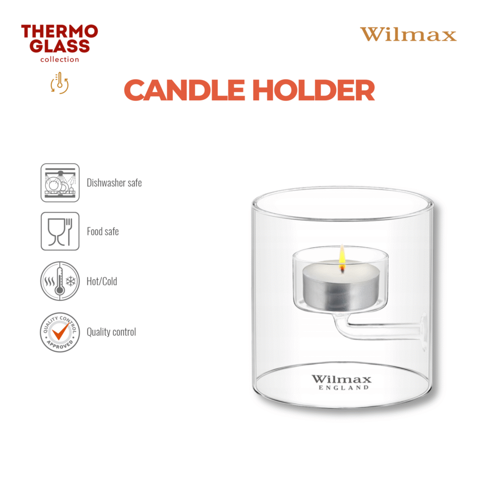 Świecznik Wilmax z kolekcji Thermo Glass to elegancki i stylowy dodatek, który stworzy niepowtarzalną atmosferę w każdym wnętrzu. Wykonany z wysokiej jakości szkła termicznego, ma wysokość 9 cm i jest przeznaczony na jedną świecę typu tealight. Charakteryzuje się nowoczesnym, minimalistycznym designem, dzięki czemu doskonale komponuje się z różnymi dekoracjami. Świecznik jest nie tylko estetyczny, ale również funkcjonalny – można go myć w zmywarce, co ułatwia jego pielęgnację. Jego błyszczące wykończenie dodaje charakteru i elegancji, co sprawia, że idealnie nadaje się do codziennego użytku, jak i na przyjęcia czy romantyczne kolacje. W zestawie znajduje się jeden świecznik, który doskonale uzupełni pozostałe akcesoria z linii Wilmax. Wprowadź subtelne światło i styl do swojego domu z tym wyjątkowym świecznikiem.