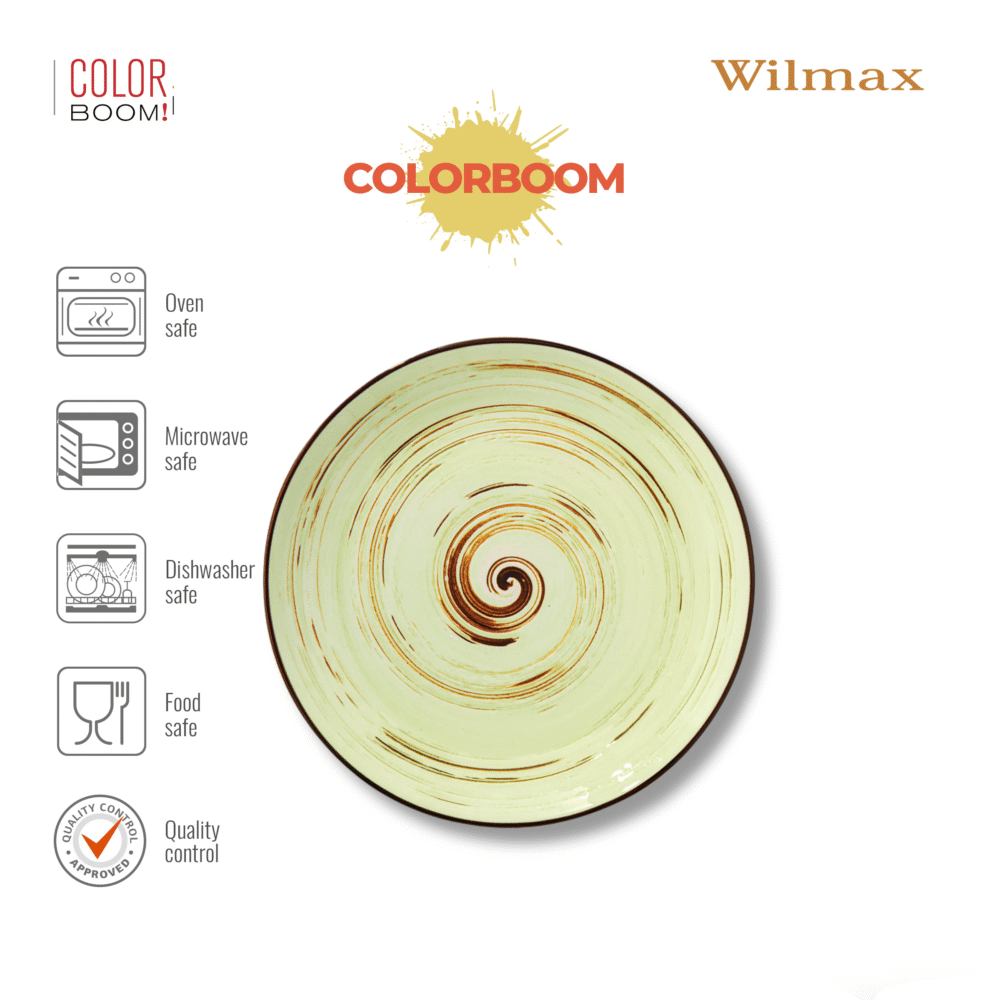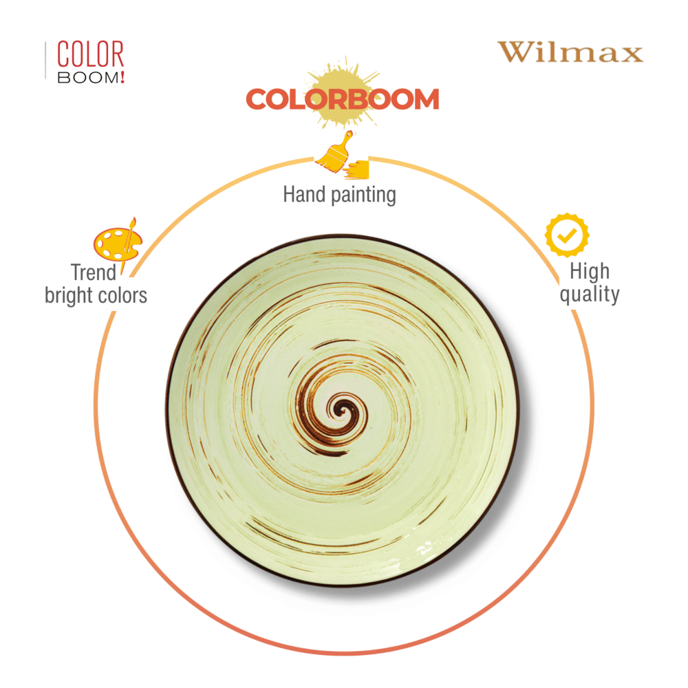 Wykonany z wysokiej jakości porcelany, talerz charakteryzuje się delikatnym, ręcznie aplikowanym glazurowaniem, co sprawia, że każdy egzemplarz jest unikatowy. Kolekcja COLORBOOM od WILMAX to szeroki asortyment kolorowych naczyń, które skutecznie ożywią każdy stół, zarówno podczas codziennych posiłków, jak i w trakcie uroczystości.